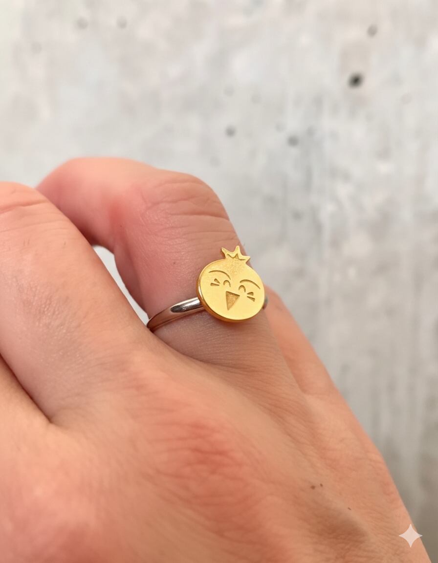 徳島県のマスコットキャラクター「すだちくん」をモチーフにした指輪です。顔が少し傾いていてリラックスしたOFFの愛らしいバージョン。