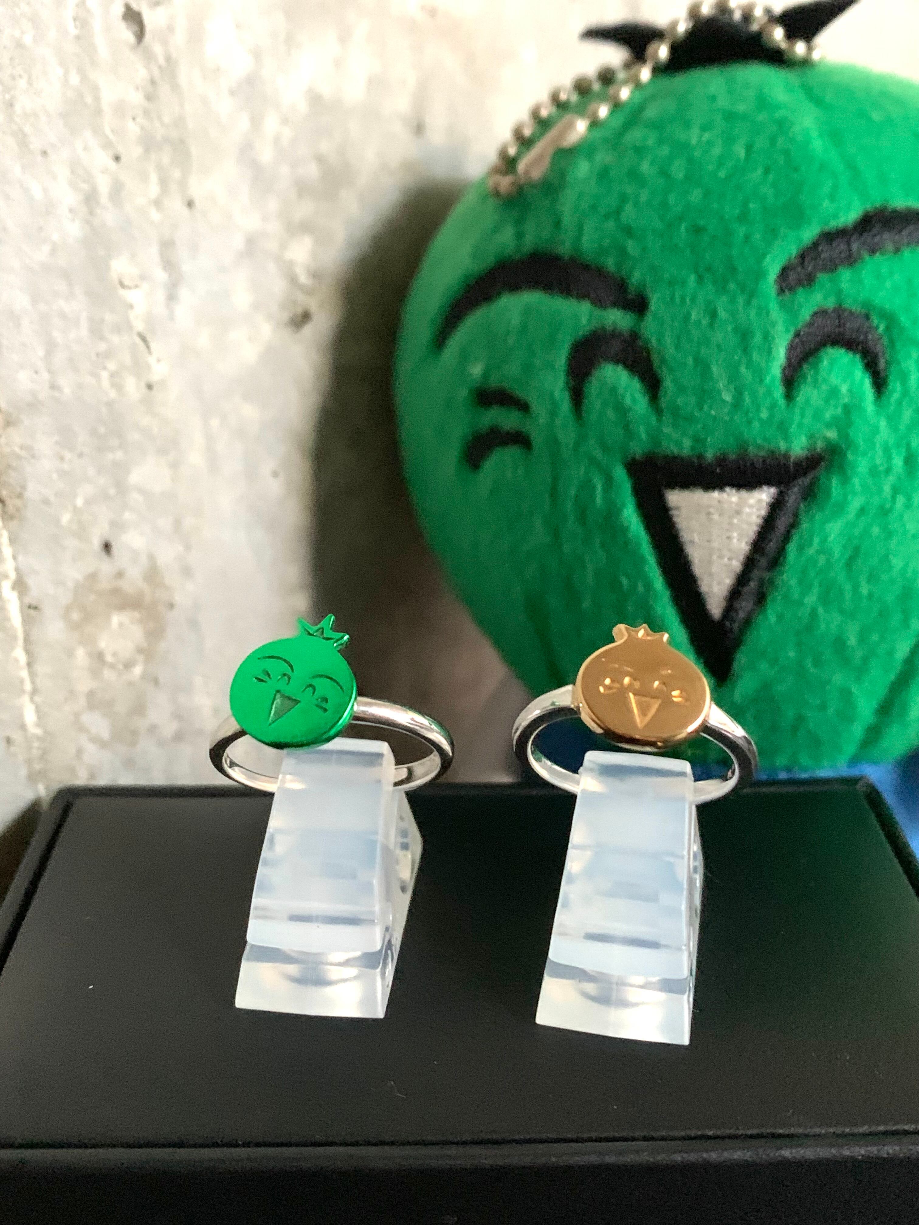徳島県のマスコットキャラクター「すだちくん」をモチーフにした指輪です。顔が少し傾いていてリラックスしたOFFの愛らしいバージョン。